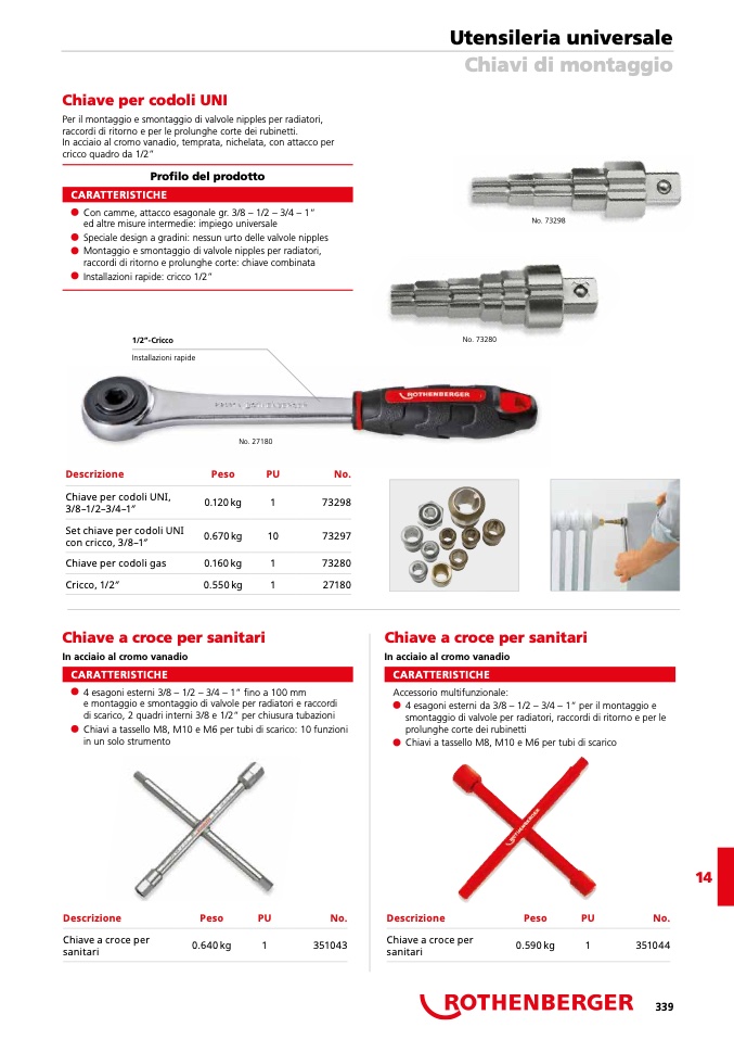 Per il montaggio e smontaggio di valvole nipples per radiatori,