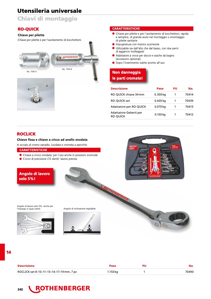 Chiave per pilette e per l’avvitamento di bocchettoni, rapida