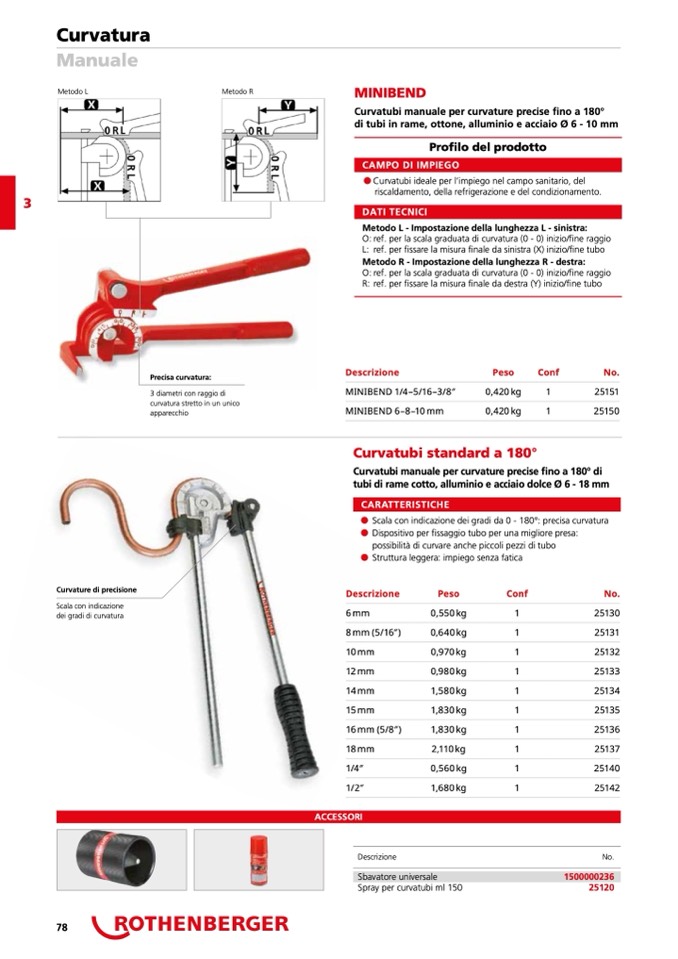 Curvatubi manuale per curvature precise fino a 180° di