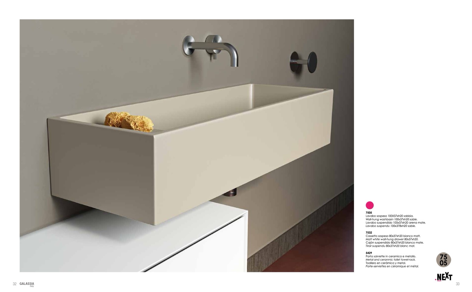 Lavabo sospeso 100X37xh20 sabbia.