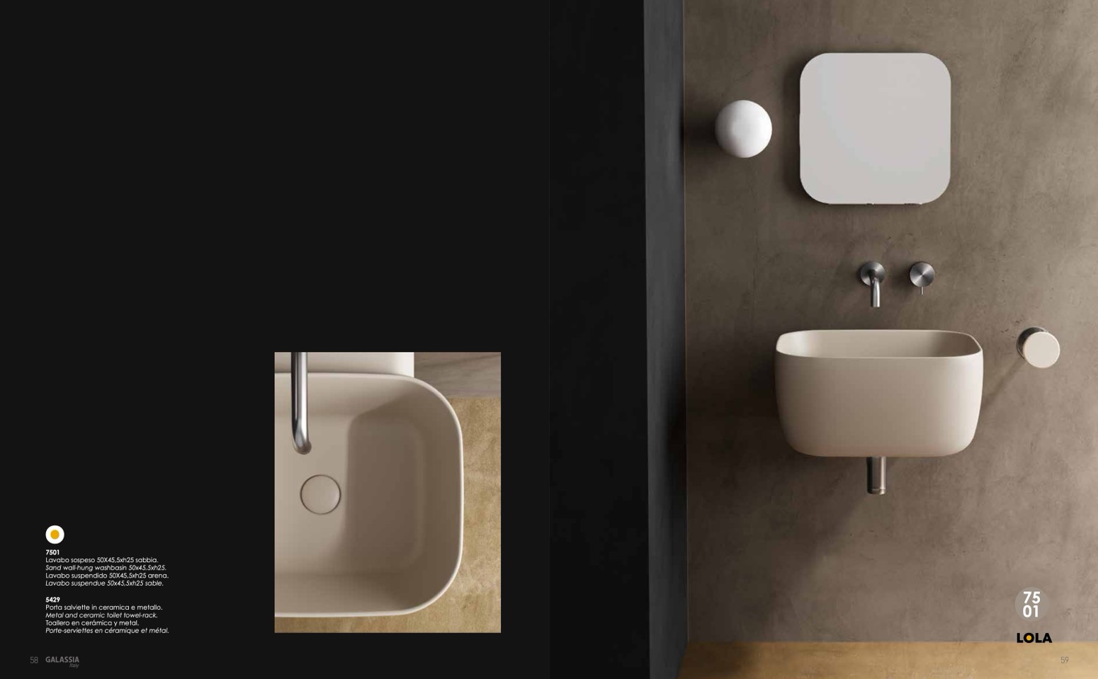 Lavabo sospeso 50X45,5xh25 sabbia.