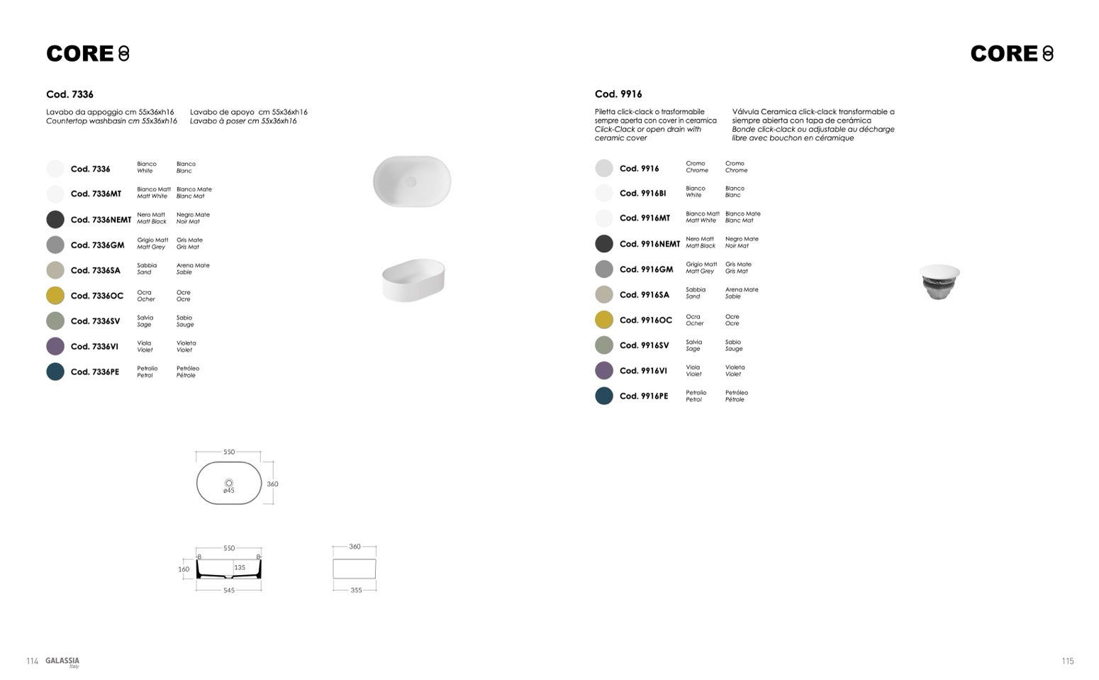 Countertop washbasin cm 55x36xh16