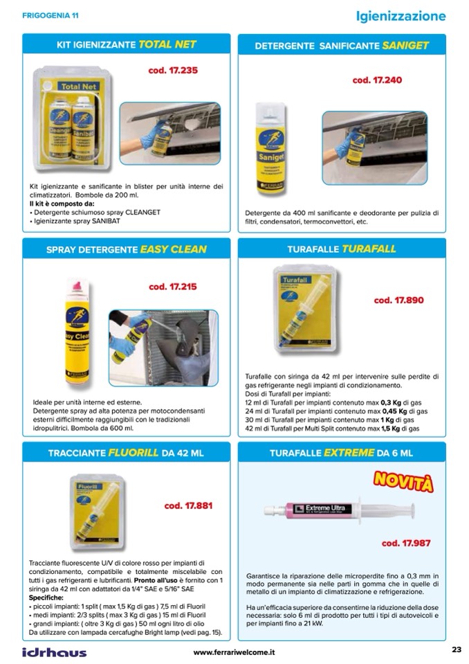 • piccoli impianti: 1 split ( max 1,5 Kg di gas ) 7,5 ml di Fluoril