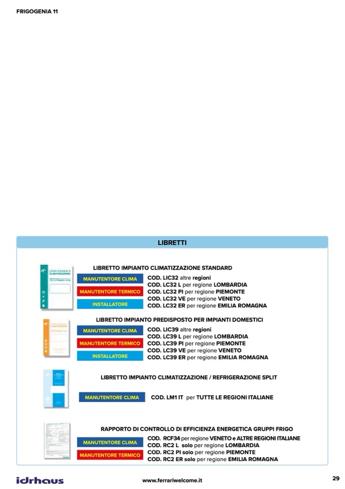 LIBRETTO IMPIANTO CLIMATIZZAZIONE / REFRIGERAZIONE SPLIT