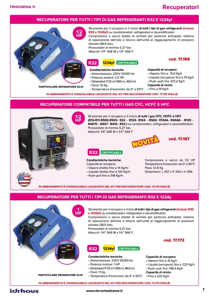 RECUPERATORE PER TUTTI I TIPI DI GAS REFRIGERANTI R32 E 1234yf