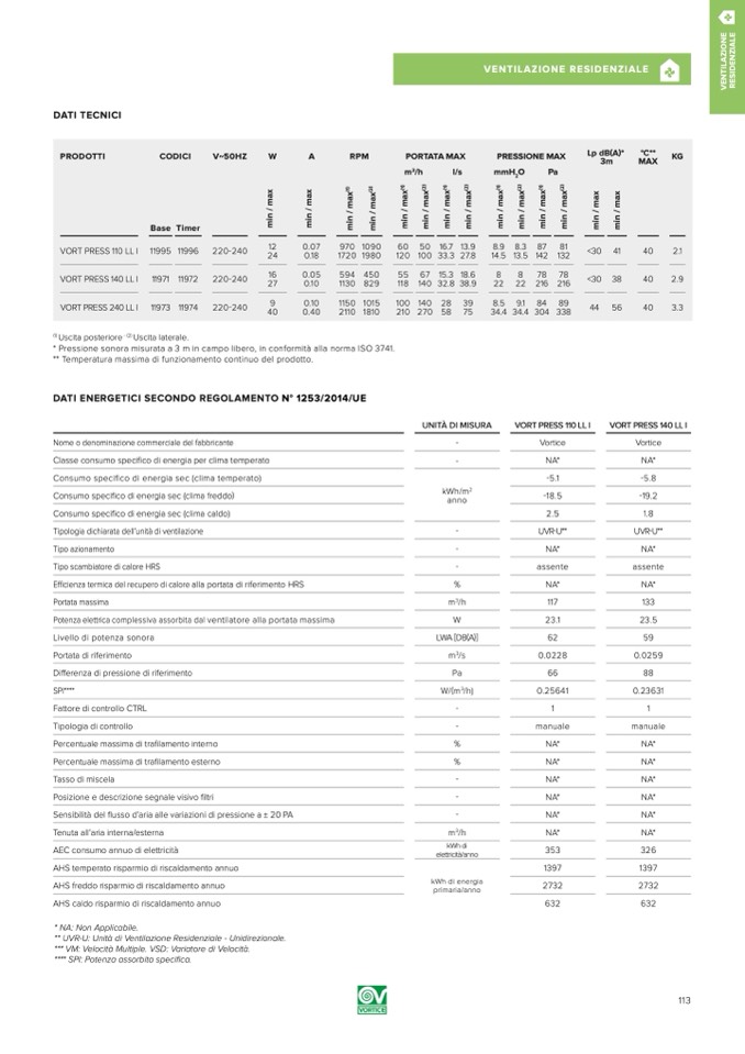 *** VM: Velocità Multiple. VSD: Variatore di Velocità.