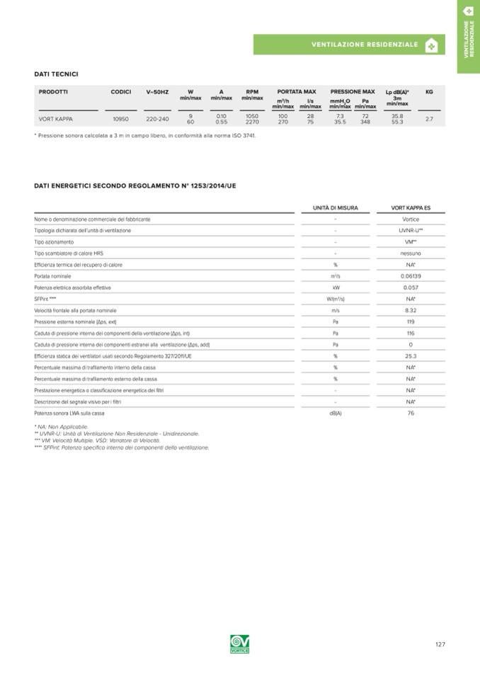 DATI ENERGETICI SECONDO REGOLAMENTO N° 1253/2014/UE