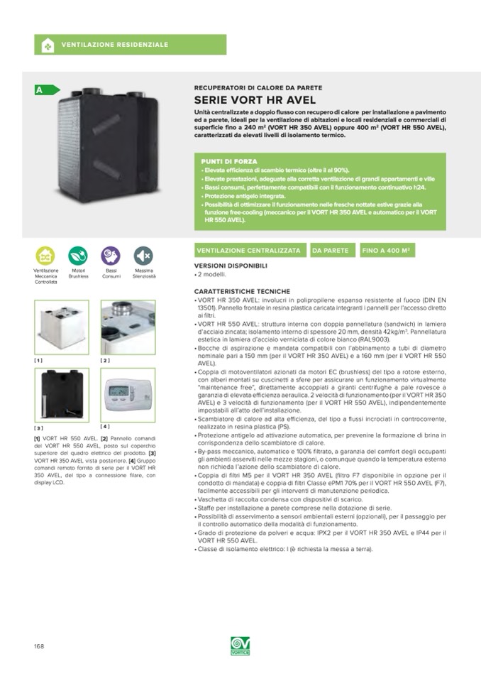 AVEL) e 3 velocità di funzionamento (per il VORT HR 550 AVEL), indipendentemente