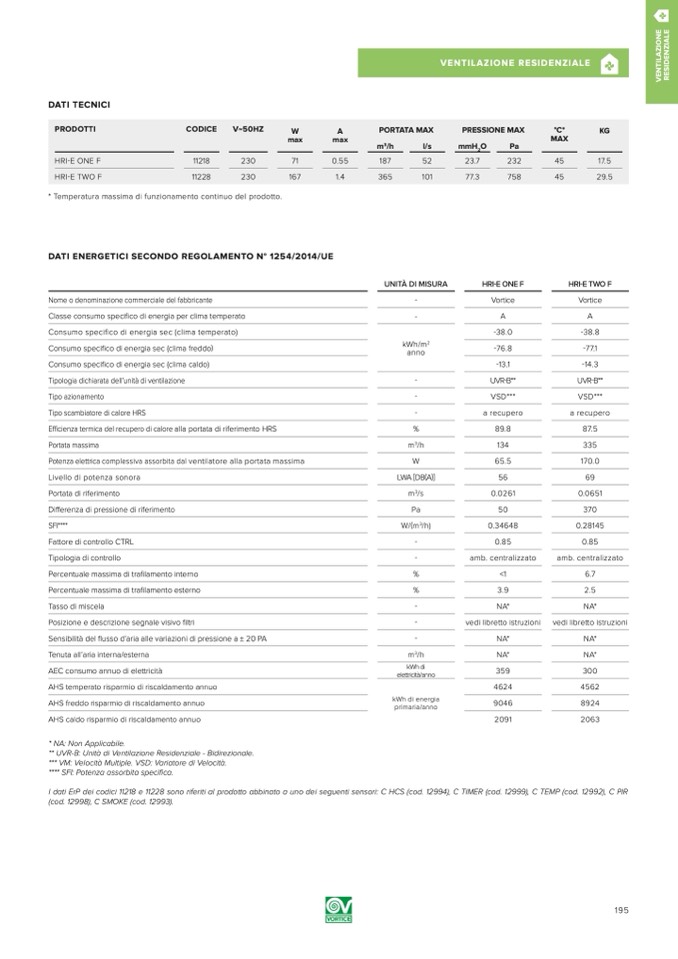 I dati ErP dei codici 11218 e 11228 sono riferiti al prodotto abbinato a uno dei seguenti sensori: C HCS (cod. 12994), C TIMER (cod. 12999), C TEMP (cod. 12992), C PIR