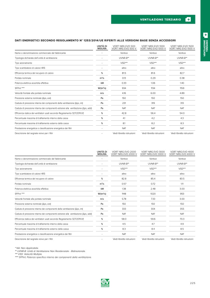 * NA: Non Applicabile.