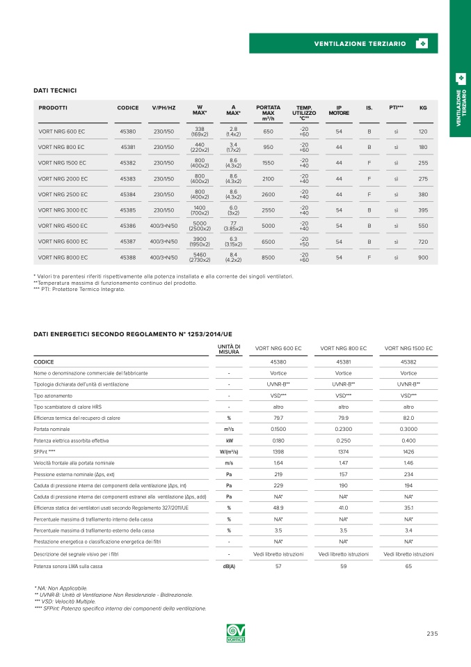 DATI ENERGETICI SECONDO REGOLAMENTO N° 1253/2014/UE