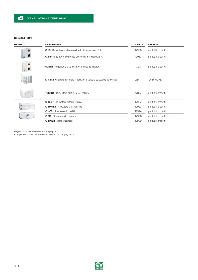 Componenti di impianto (descrizione e dati da pag. 689).