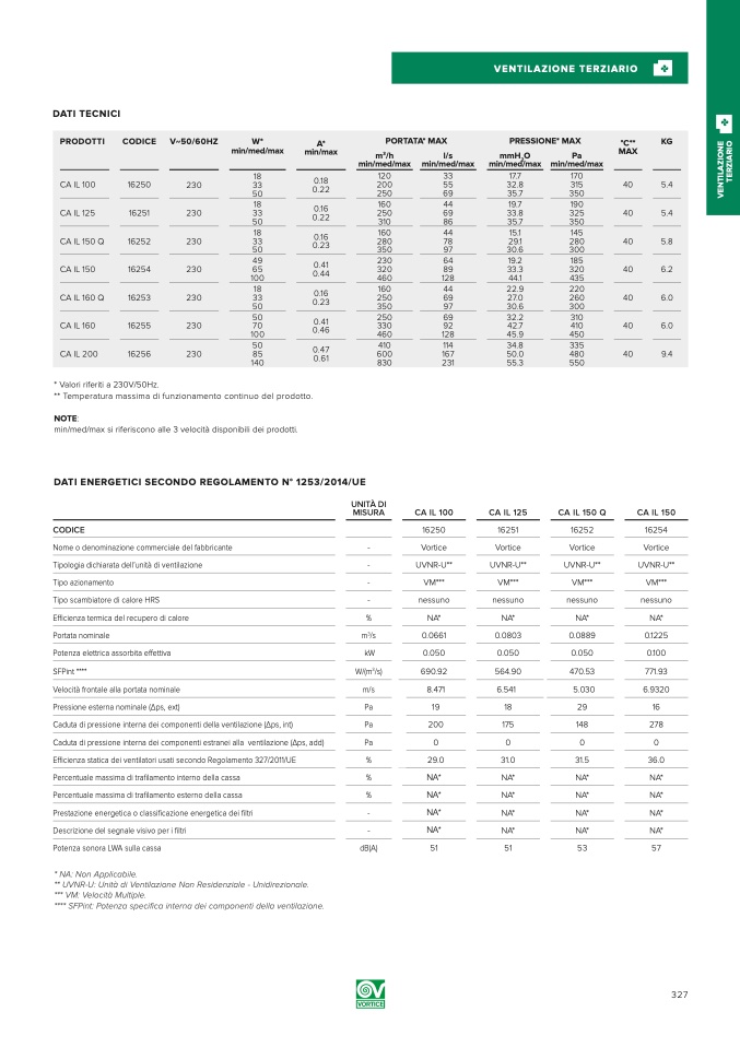 min/med/max si riferiscono alle 3 velocità disponibili dei prodotti.