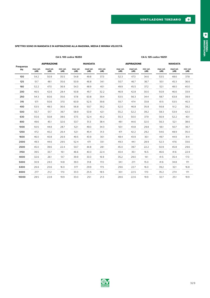 SPETTRO SONO IN MANDATA E IN ASPIRAZIONE ALLA MASSIMA, MEDIA E MINIMA VELOCITÀ