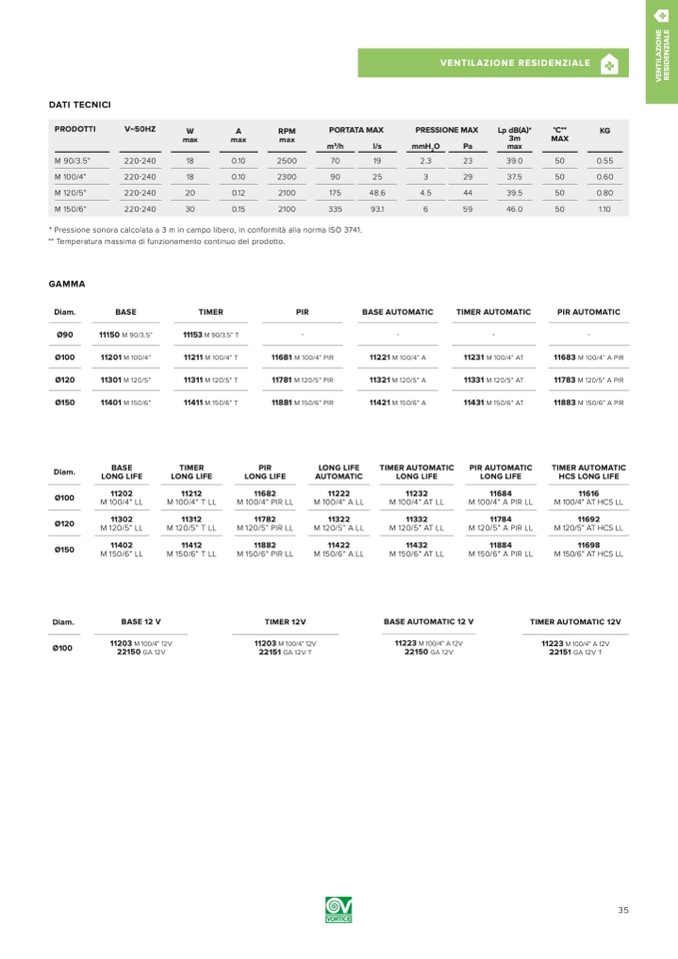 * Pressione sonora calcolata a 3 m in campo libero, in conformità alla norma ISO 3741.