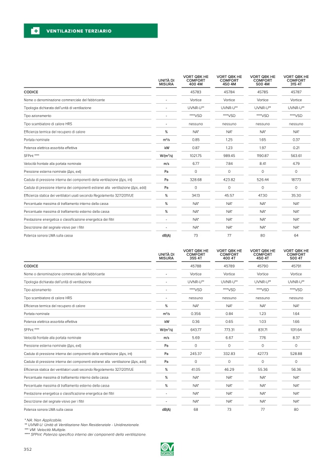 **** SFPint: Potenza specifica interna dei componenti della ventilazione.