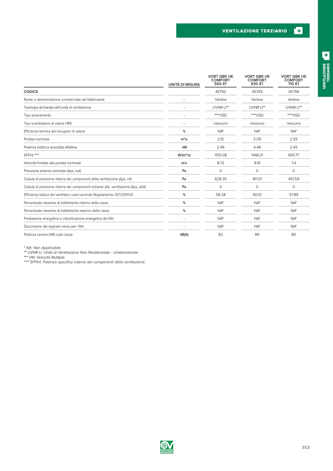 * NA: Non Applicabile.