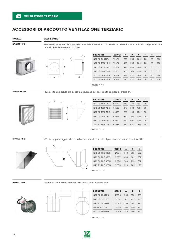 • Manicotto applicabile alla bocca di espulsione dell’aria munita di griglia di protezione.