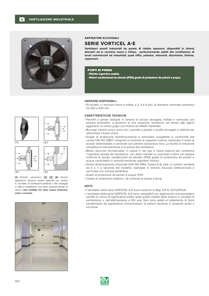 • I ventilatori della serie VORTICEL A-E sono compatibili con applicazioni che prevedano