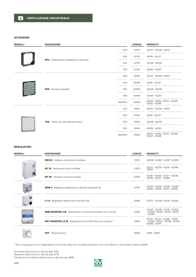 * Per la regolazione di un Regolatore con Inverter abbinare un potenziomentro 0-10 V da 10kohm, come codice Vortice 12828.