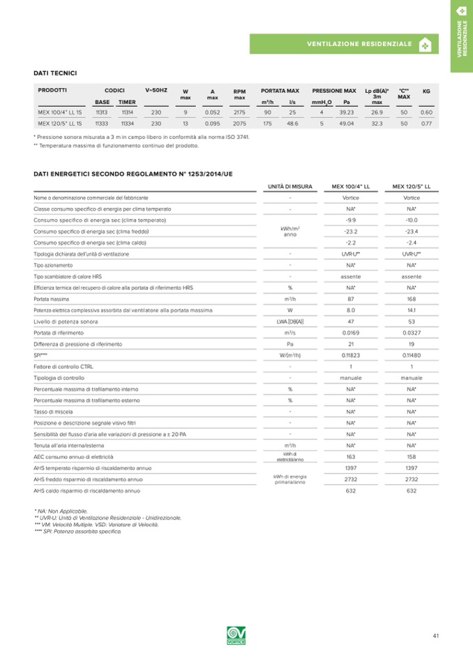 DATI ENERGETICI SECONDO REGOLAMENTO N° 1253/2014/UE