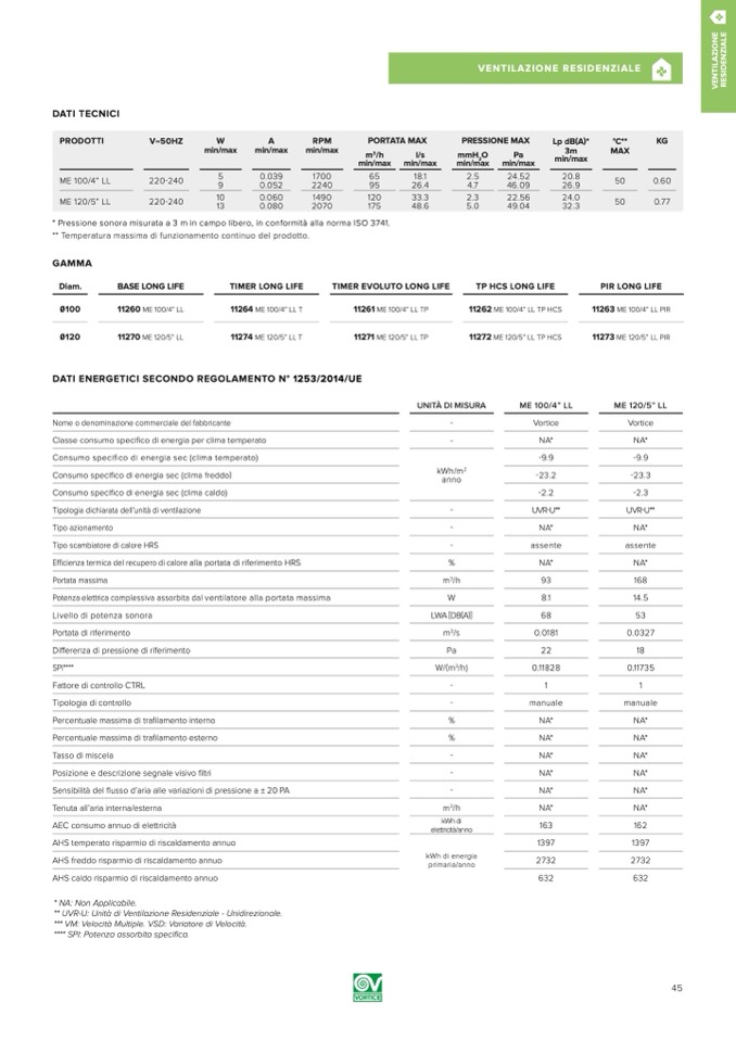 DATI ENERGETICI SECONDO REGOLAMENTO N° 1253/2014/UE