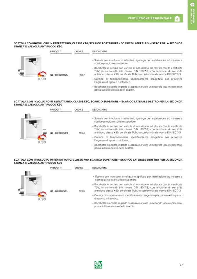 antifuoco classe K90, certificata TUM, in conformità alla norma DIN 18017-3.