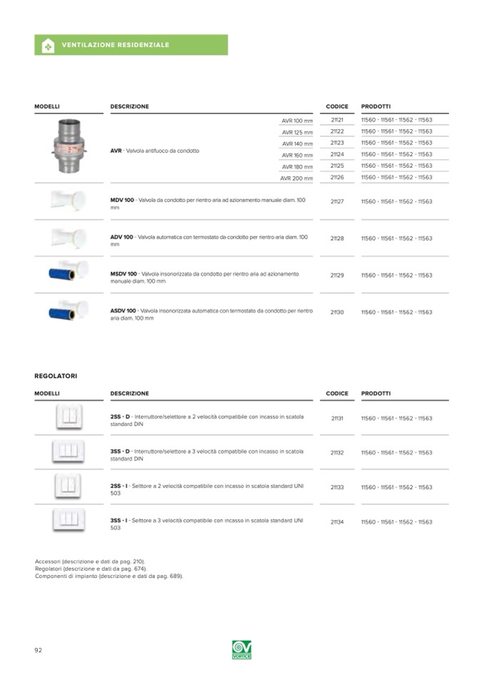 Componenti di impianto (descrizione e dati da pag. 689).
