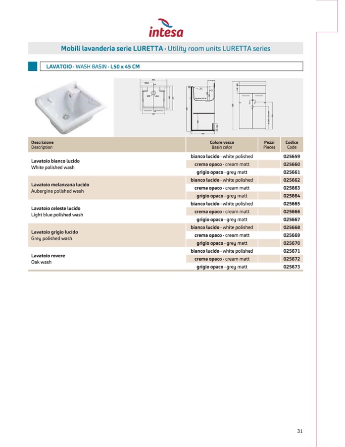 LAVATOIO·WASH BASIN • lSO x 45 C