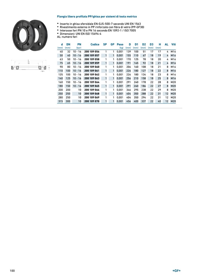 Flangia libera profilata PP/ghisa per sistemi di testa metrico