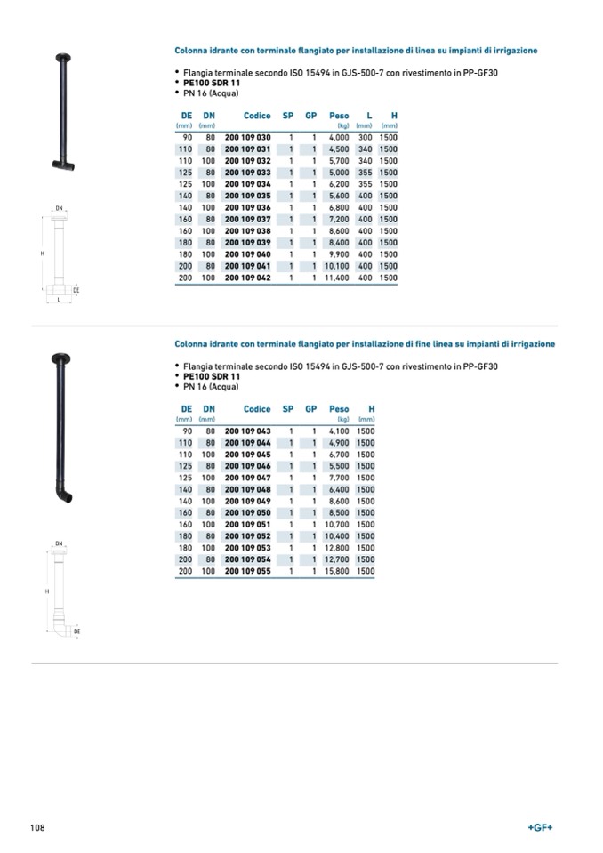 Colonna idrante con terminale flangiato per installazione di linea su impianti di irrigazione