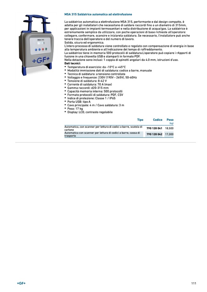 MSA 315 Saldatrice automatica ad elettrofusione