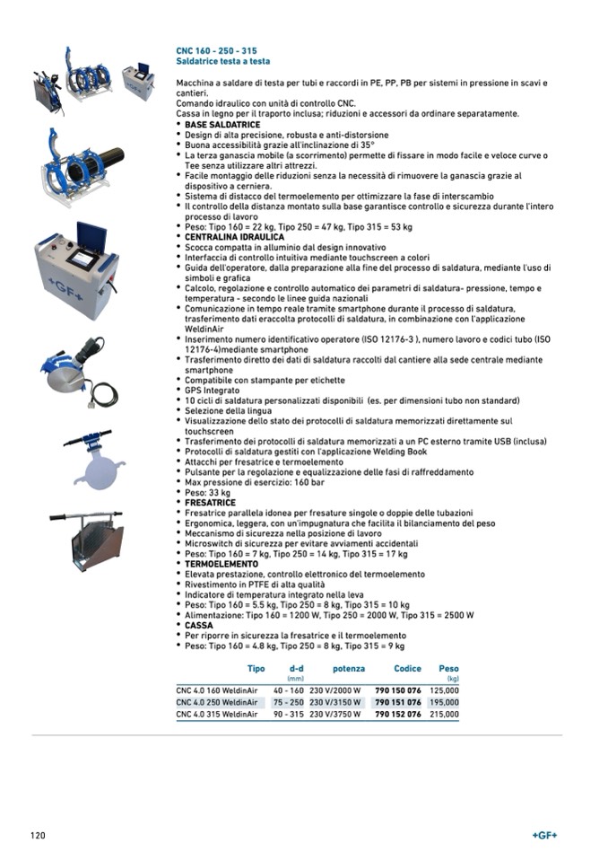 Macchina a saldare di testa per tubi e raccordi in PE, PP, PB per sistemi in pressione in scavi e