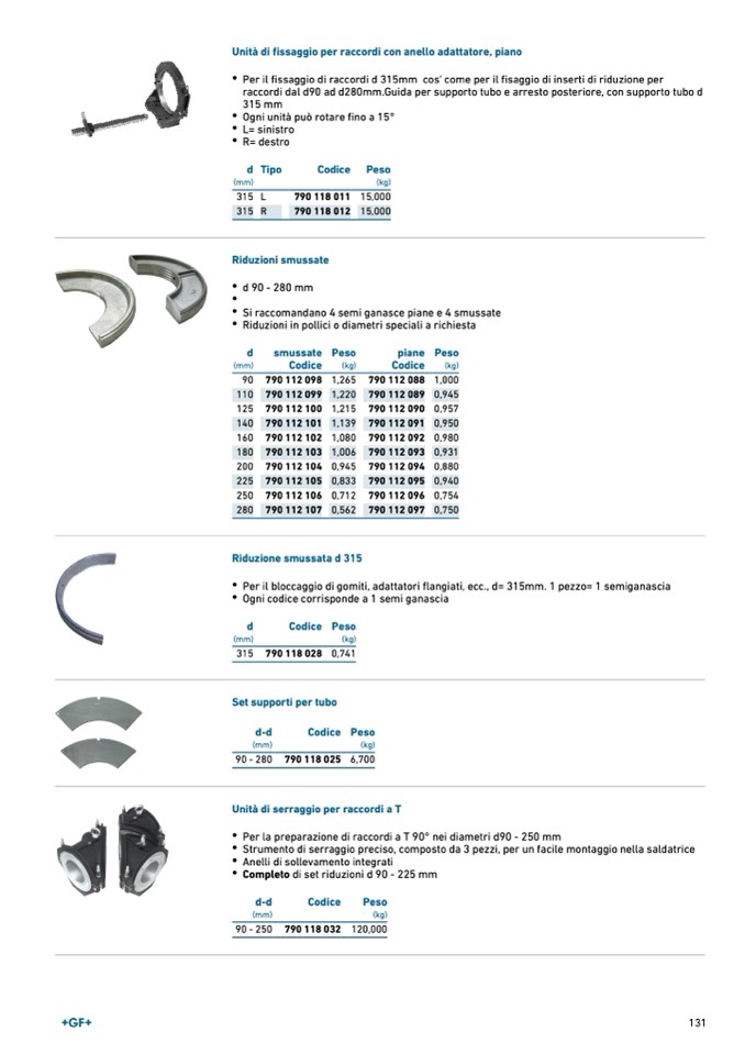 Per il bloccaggio di gomiti, adattatori flangiati, ecc., d= 315mm. 1 pezzo= 1 semiganascia