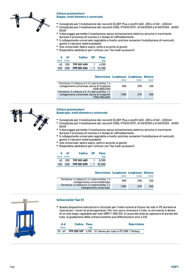 Consigliato per l'installazione dei raccordi COOL-FITd32/D75 -d140/D200 e d160/D250 - d450/