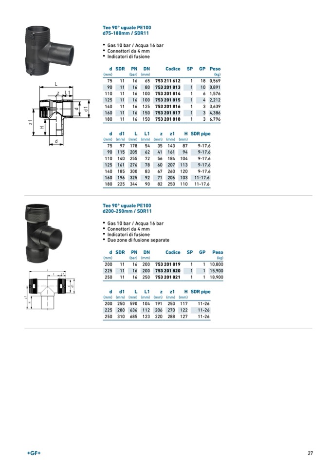 Gas 10 bar / Acqua 16 bar
