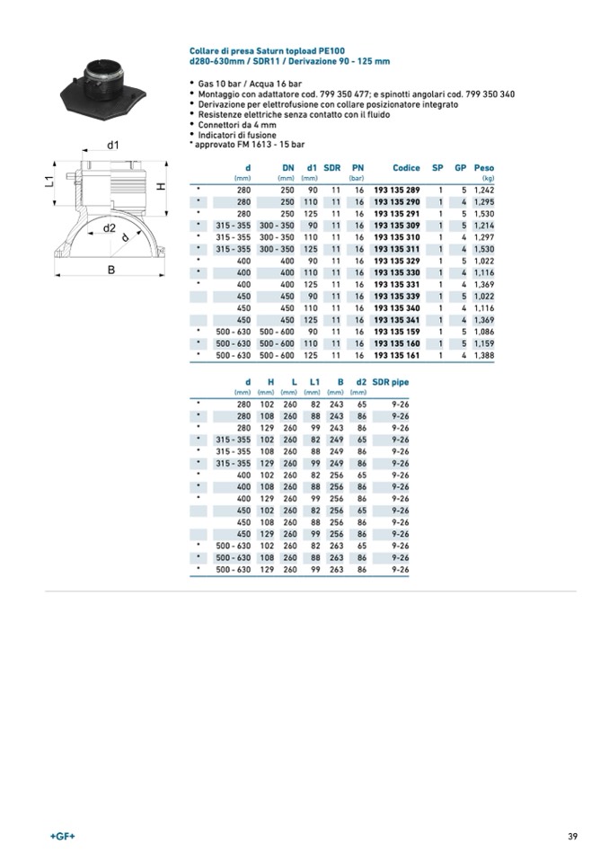d280-630mm / SDR11 / Derivazione 90 - 125 mm