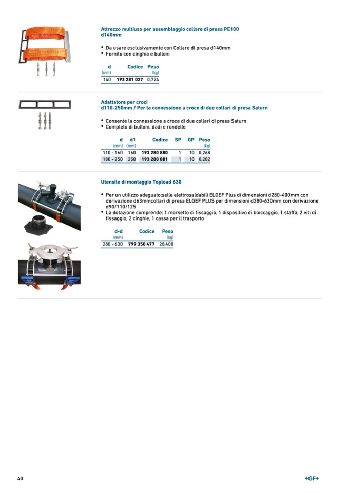 Per un utilizzo adeguato:selle elettrosaldabili ELGEF Plus di dimensioni d280-400mm con