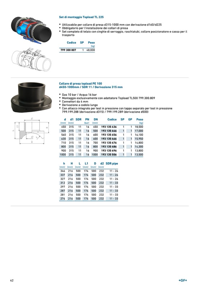 799.199.288 (derivazione d315) / 799.199.289 (derivazione d500)