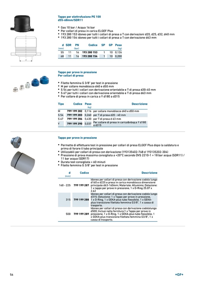 d315; Dotazione: 1 x Tappo per prove in pressione,