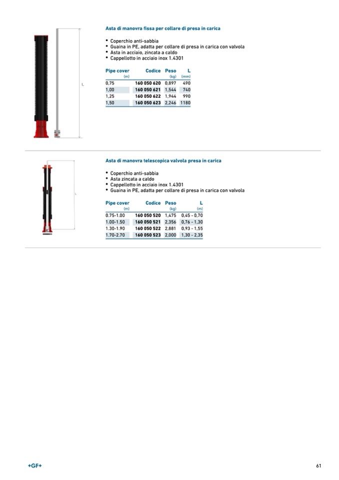 Asta di manovra telescopica valvola presa in carica