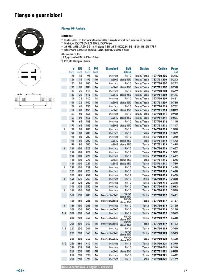 Metrico: ISO 7005, EN 1092, ISO 9624