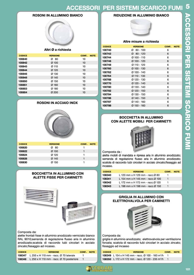 griglia in alluminio anodizzato; elettrovalvola per ventilazione