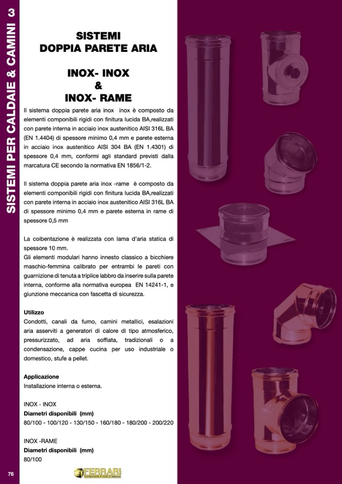 Il sistema doppia parete aria inox -rame è composto da