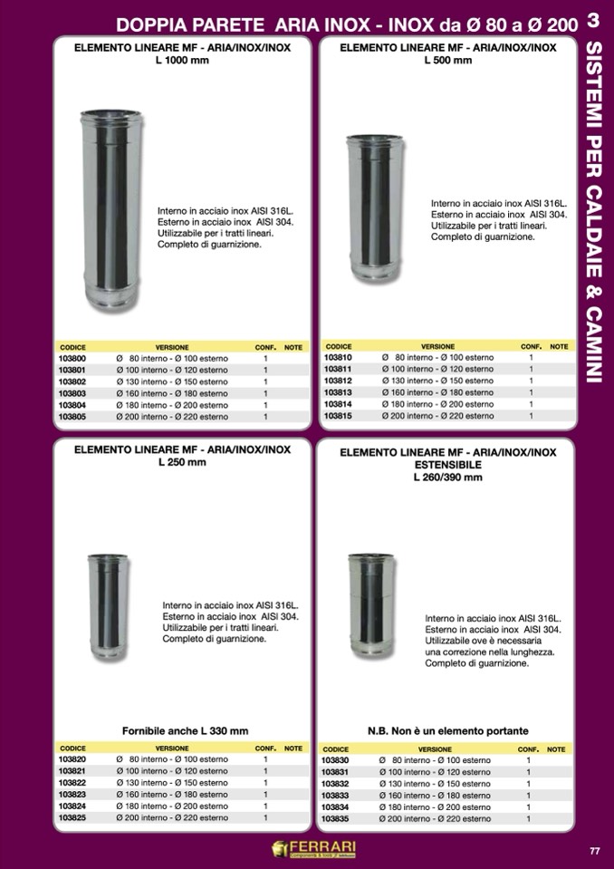 ELEMENTO LINEARE MF - ARIA/INOX/INOX