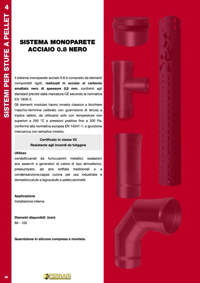 Il sistema monoparete acciaio 0.8 è composto da elementi