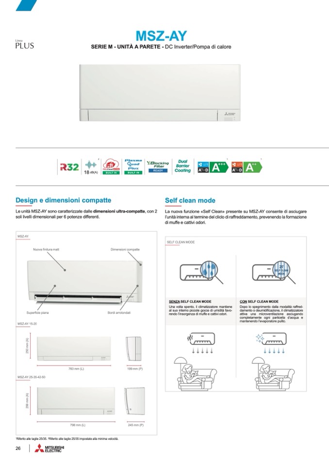Le unità MSZ-AY sono caratterizzate dalle dimensioni ultra-compatte, con