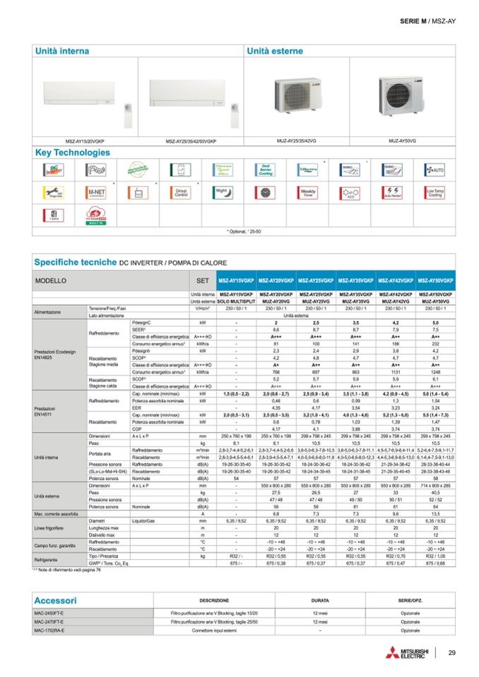 Unità interna MSZ-AY15VGKP MSZ-AY20VGKP MSZ-AY25VGKP MSZ-AY35VGKP MSZ-AY42VGKP MSZ-AY50VGK
