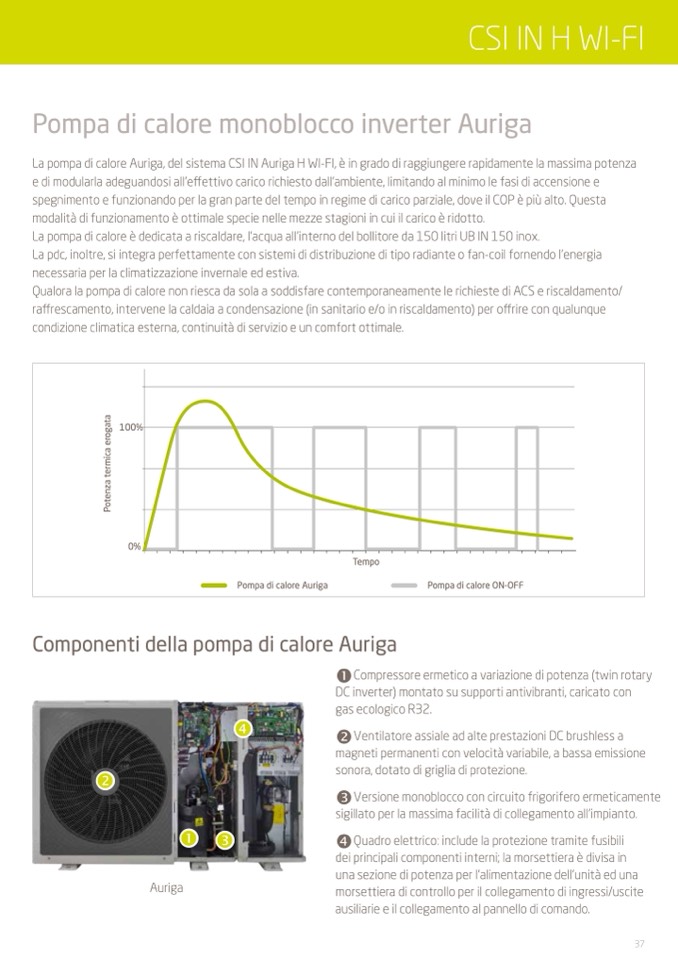 La pompa di calore Auriga, del sistema CSI IN Auriga H WI-FI, è in grado di raggiungere rapidamente la massima potenza