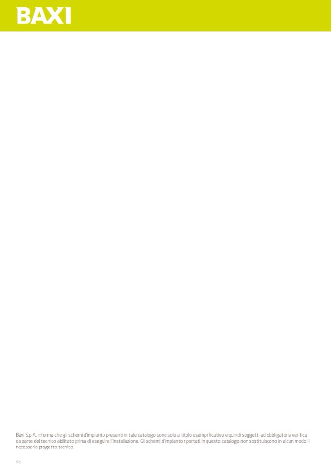 Baxi S.p.A. informa che gli schemi d’impianto presenti in tale catalogo sono solo a titolo esemplificativo e quindi soggetti ad obbligatoria verifica